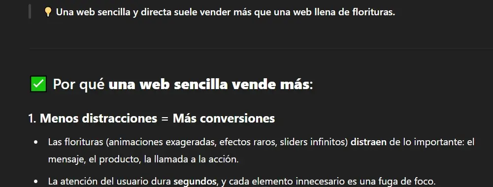 Pero resulta que todas las webs están llenas de florituras, imágenes, textos que se mueven, etc.